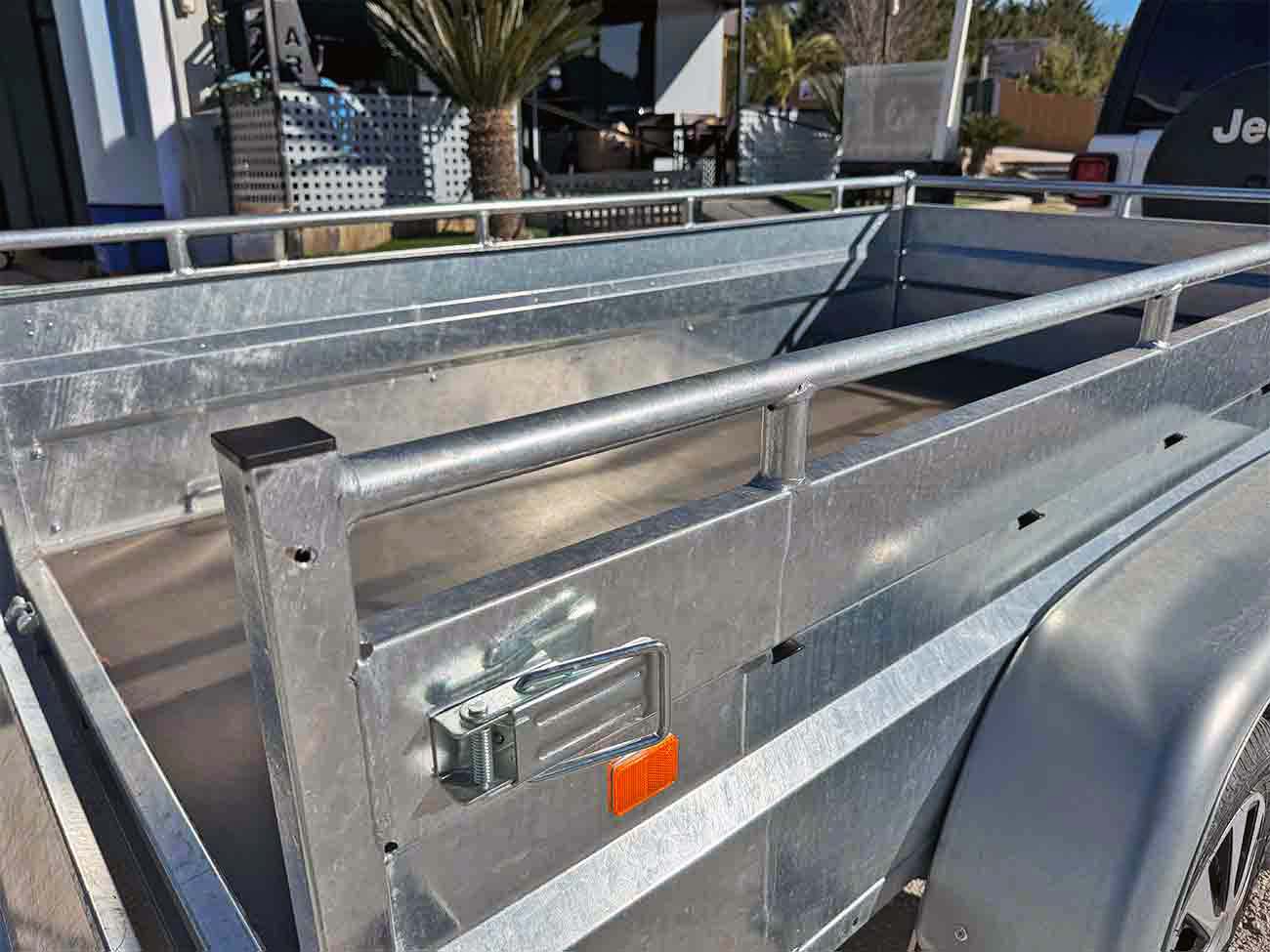 Su construcción totalmente soldada y galvanizada aporta una resistencia superior y evita los problemas de remolques atornillados o con riesgo de oxidación. Es un remolque diseñado para durar muchos años incluso bajo uso intensivo.